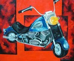 2006blauwe motor op knalrode achtergrond
